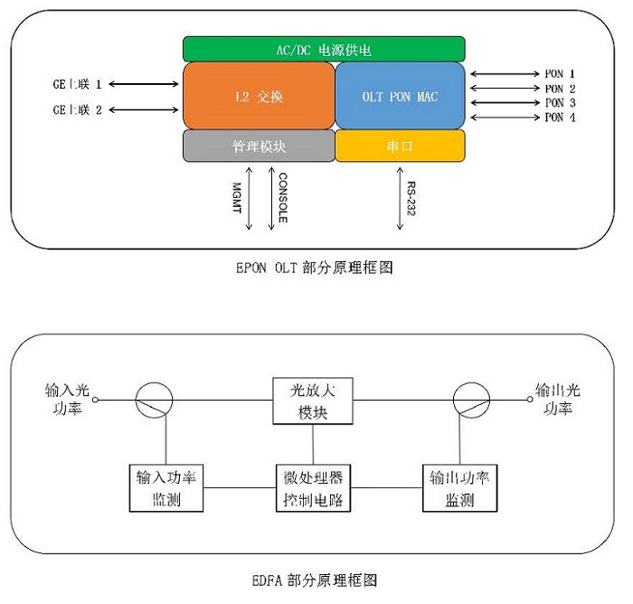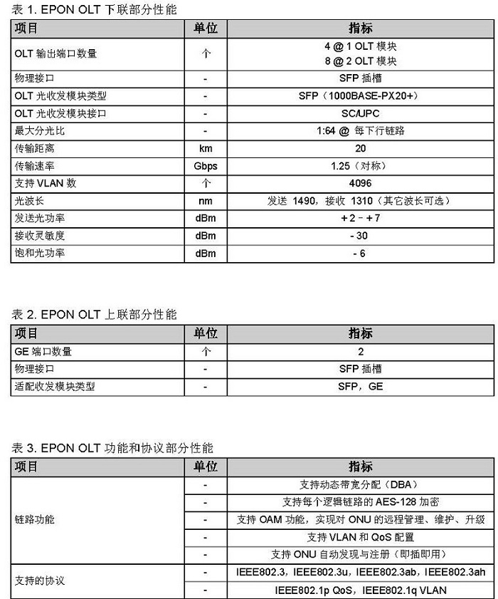 GSDCOH 提供 2 個上聯(lián) GE 端口,4 或 8 個下聯(lián)千兆 OLT 端口,1 個 MGMT 本地管 理端口, 1 個 console 故障診斷端口, 1 個 RS-232 串口。該 頭端 OLT 的最大分光比為 1:64, 系統(tǒng)最大可支持 256(1 個 OLT 模塊)或 512(2 個 OLT 模塊)個 ONU。